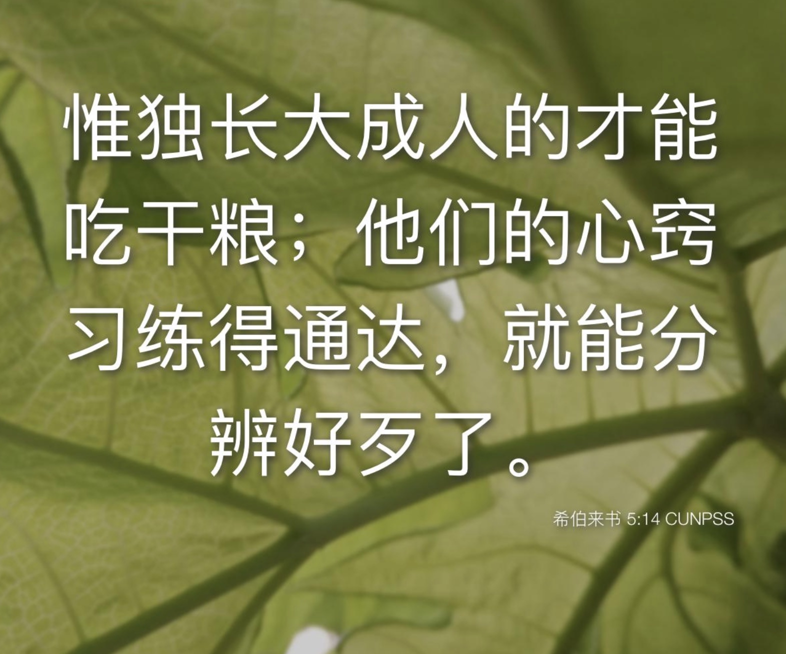 希伯來書說:“惟獨長大成人的才能吃乾糧;他們的心竅習練得通達,就能分辨好歹了。”(來五14)