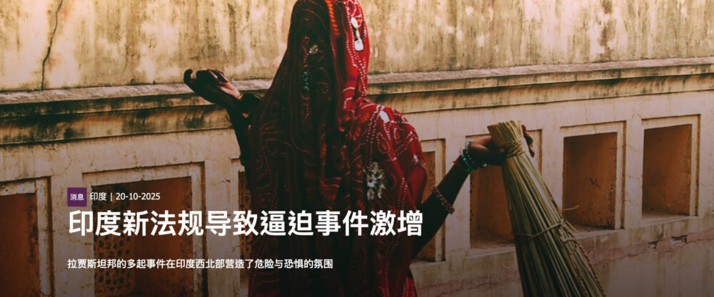 “至2025年8月,该邦已报告超过75起逼迫事件,而9月9日反改教法通过后至少又发生5起。基督徒处境艰难,长期活在遭受攻击与暴民暴力的恐惧中。 请祈祷拉贾斯坦邦的基督徒在这段艰难时期能从基督里得着安慰与力量。”